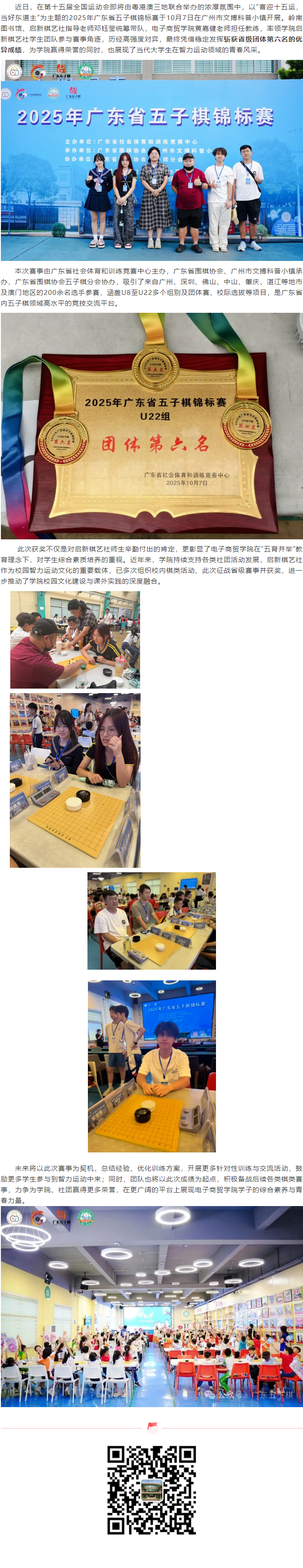 征战省赛创佳绩!我院图书馆指导学生社团斩获2025年广东省五子棋锦标赛团体第六名!