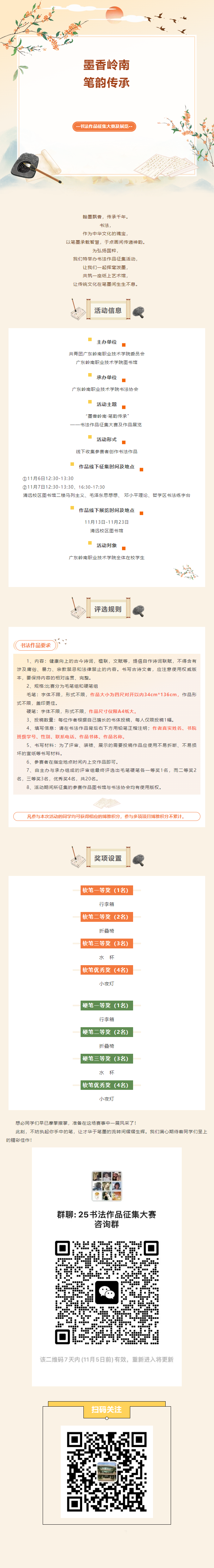 科技文化节丨墨香岭南·笔韵传承书法作品征集大赛及展览