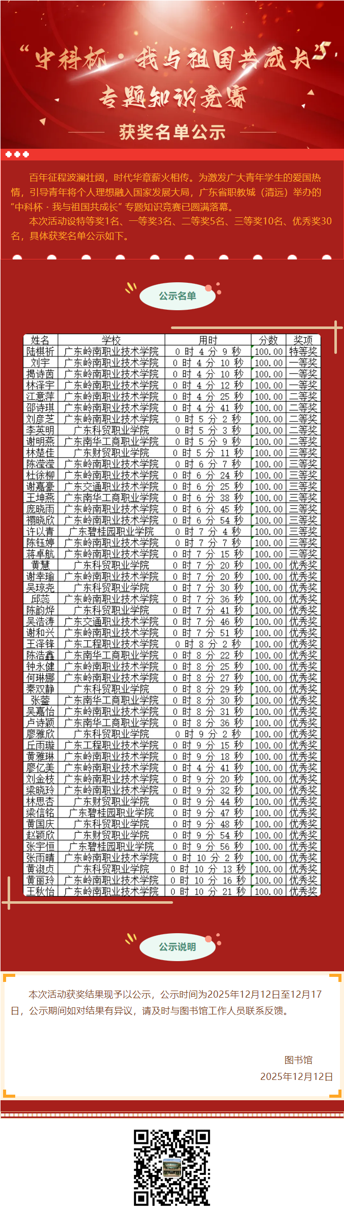 名单公示 | “中科杯・我与祖国共成长” 专题知识竞赛名单公示