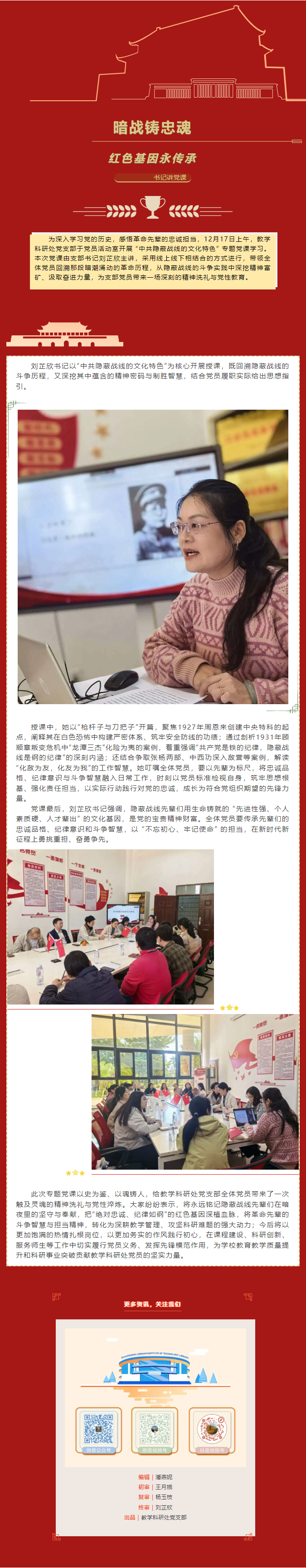 书记讲党课|暗战铸忠魂,红色基因永传承