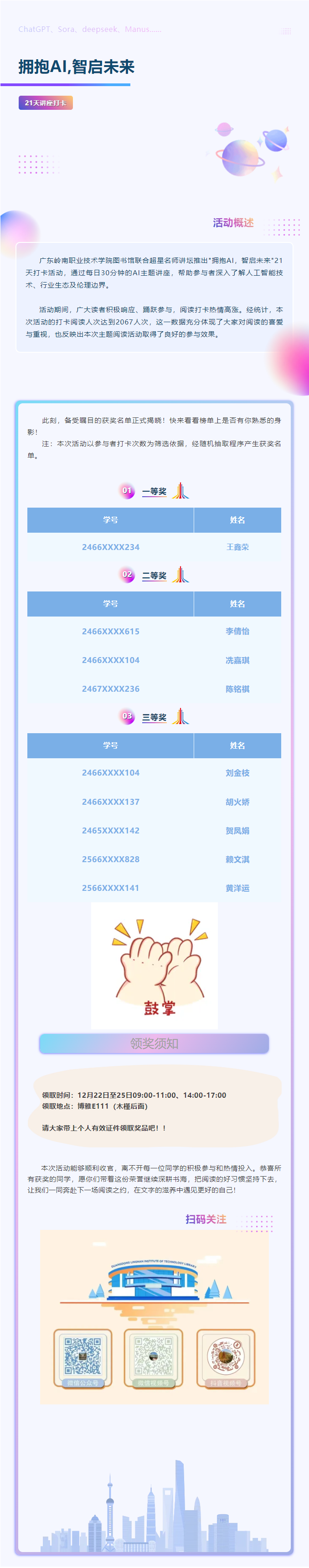 获奖公布 | 拥抱AI,21天讲座打卡圆满结束
