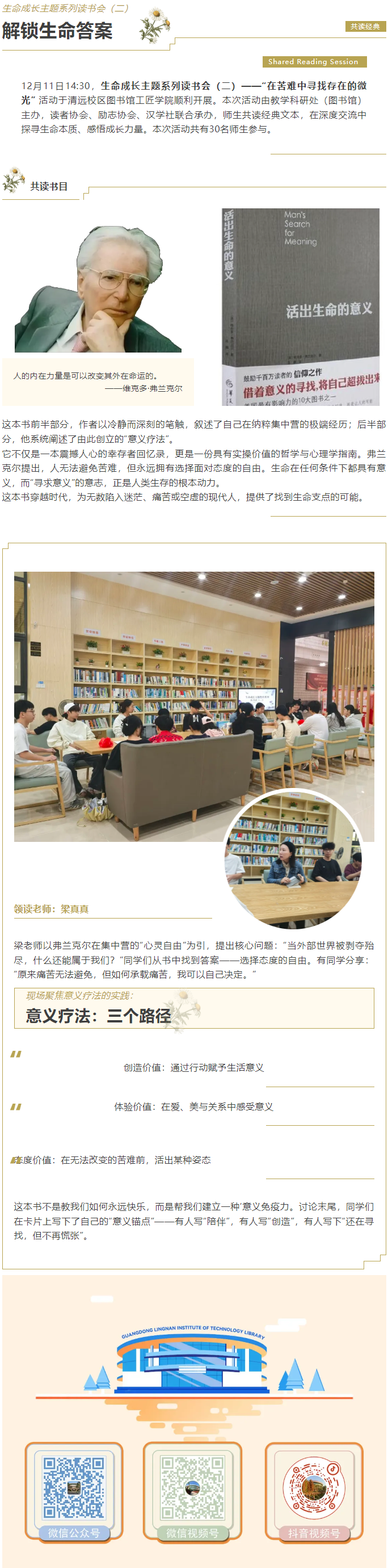 第五期读书沙龙丨生命成长主题系列读书会(二):“在苦难中寻找存在的微光”