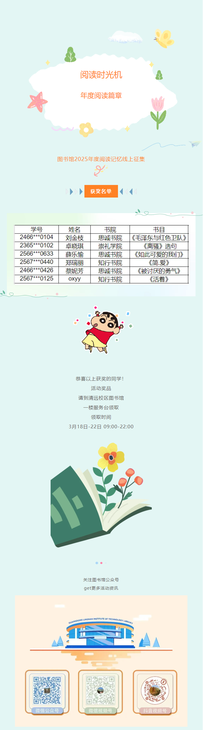 图书馆2025年度阅读记忆线上征集,获奖名单揭晓!